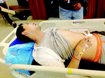 | 的哥王师傅的左下腹有一处明显的刀伤。 曹思扬 摄 |  | 制图:杨帅 |