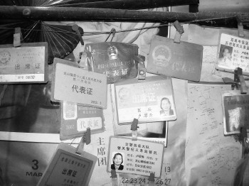 | 85岁的卢翠秀(右)是目前日照市年龄最大的现任村支书。 |  | 卢翠秀出席党的各项会议的证件挂了一墙。 |