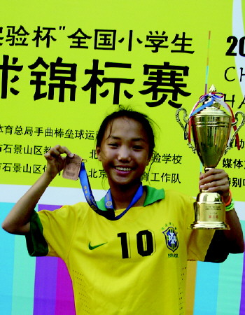 青岛镇江路小学 五年级二班 李嘉萱 我眼中的我 去年暑假我们镇江路小学手球队参加了“励耘实验杯”全国小学生手球锦标赛,并取得了女子乙组全国第三的好成绩!要问我的感受是什么,那就是太多的“第一次”啦! 第一次离开父母参加比赛。没有爸爸妈妈的帮忙,我们自己背着大大的背包在火车站排队检票,自己拉着重重的皮箱登上火车。我们在火车上像大人们一样聊着天,看着窗外的风景,玩着游戏,开心地笑着。离家的第一个晚上,写着日记的我偷偷地哭了。 第一次住集体宿舍。我们的宿舍是8人间的。因为新鲜、好奇,我们都争着想睡上铺,最后决定轮流睡上下铺。到了晚上,我们有时会讲一些搞笑的鬼故事,胆大的会哈哈大笑,胆小的则钻进被窝不敢出来。有时我们赢了比赛,高兴得晚上都睡不着觉,我们便研究战术,准备下一场战斗。有时我们还会在宿舍里唱歌、跳舞、开party为我们自己加油,开心极了! 第一次自己洗衣服。每次打完比赛,我们都要自己洗澡洗衣服。洗衣服的地方有一排水龙头,我们站成一排一起洗衣服。同学们洗衣服的样子真是千姿百态啊!有的人低着头伸着手奋力地搓着,有的人把衣服放在手里使劲儿地抠着,有的人把手放在盆里拼命地搅着,有的人提着衣服上上下下地抖着,有的人哼着小曲很随意地冲着,有的人因为没有抢上水龙,皱着眉头苦着脸在一旁焦急地等着……真是太搞笑了! 第一次捧起奖杯。这次比赛,我们获得第三名,开心极了!在颁奖晚会上,当主持人让我们上台领奖时,我们兴奋地跳起来!当颁奖老师把奖杯递给我时,我激动万分!我把奖杯高高举过头顶,我们每一个人都举起胸前的奖牌,向教练、向老师、向亲友团致意! 在北京比赛的这九天里有着太多的“第一次”。这些“第一次”给我带来了集体生活的欢乐,让我感受到了对父母的思念,体会到了比赛的喜怒哀乐,得到了纯洁的友谊……这许许多多的“第一次”使我留下了终生难忘的美好回忆。