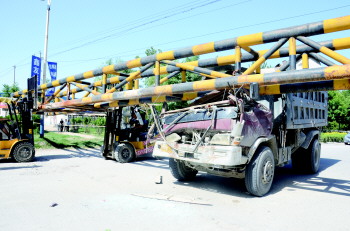 26日下午2点42分,聊城聊位路凤凰工业园附近,一辆大卡车由于车翻斗没有完全放下,撞倒道路上的限高杆,造成驾驶室被压,车内一名男子被困,消防官兵将其救出后,该男子已经死亡。