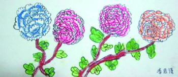 红黄蓝美术学校学生李思瑾(6岁) 儿童画作品《盛开的牡丹》 辅导老师:李霞