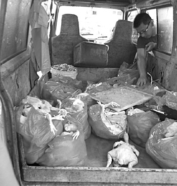 | 面包车里准备销售的病死鸡。警方供图 |  | 被查获的毒豆芽多达1200箱。警方供图 |  | 黑作坊每天有数百斤猪皮冻流向市场。警方供图 |