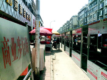 20米宽步行街 板房占了12米 25日,记者来到李先生所住的历城区上海花园,该小区南门口便是祝苑路。祝苑路为东西方向,在祝苑路的东、西两头,分别设置了路障并立着“步行街”的标牌。路障虽然挡住了汽车,但祝苑路上仍有许多电动三轮车、摩托车等穿行而过。 一排经营板房“浩浩荡荡”地从路东头架设到路西头,近1000米。装修工人正在忙着给这些门面房架屋顶。这批门面房虽为铝合金等材质,门窗一应俱全,只是门面房之间还未设置隔板,行人可在下面穿梭行走。 板房宽约12米,而祝苑路路宽近20米,板房占了路宽的六成左右。如此一来,原本宽阔的步行街被板房隔成了两条狭窄的小路。其中,北路略宽,能容下一辆三轮车通过;南路则窄得只能通过一辆电动车。许多市民为了避免与电动车、三轮车争道,纷纷从板房下穿梭。 据悉,祝苑路上除了上海花园之外,还有东方花园、祝甸社区等小区。“本来很宽的路,一下变得这么挤,我们上下班都没法走。”东方花园的陈女士说。而最令附近居民担心的是,如此拥挤的路况隐藏着重大的隐患,万一发生火灾之类的情况,“消防车都开不进来。到时我们怎么办?”陈女士说。