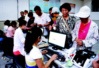 | 搬迁地点后,办卡不拥堵了。本报记者 李岩松 摄 |