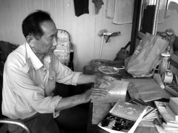 闲暇时间,赵德营最喜欢读诗作诗。本报记者 范少伟 摄 本报济宁5月28日讯 (记者 范少伟) 手拿自己写的《诗选》,在社区广场有人和他聊天,就把书送给别人。27日上午,记者在琵琶山社区广场见到了社区保安赵德营。从小热爱唐诗宋词的他将自己写作的诗歌印成小册子,送给身边的人。 “读的诗多了,自然就能写两句,写的不好,图个乐呵。”赵德营说,他今年65岁,父亲和祖父都是私塾先生,所以从小就热爱唐诗宋词。在赵德营看来,诗是用来推敲的,越推敲越有意思。“例如‘僧敲月下门’这句,贾岛用了两年时间把‘推’字改成了‘敲’,我喜欢他这种钻研和琢磨的精神。”赵德营告诉记者,有时他晚上睡着睡着突然醒了,起来就修改已经写好的诗词。 赵德营平时话不多,心情好或者不好他都会作诗自娱自乐,表达内心感情和想法。 “三十余年路漫漫,大运河畔识婵娟。四处漂泊养四子,夫妻恩爱花甲年。”这是赵德营在老伴六十岁生日时为她写的诗。当时家里十余口人聚在一起吃饭,大家开玩笑让他现场作诗,看着孩子们那么认真,赵德营沉思片刻写下这首诗,把欢乐的气氛推向高潮。 家里诗稿多了,赵德营就整理印成册,取名《赵德营诗书选》,里面不仅有自己写的诗,还附上自己的电话号码,送给亲戚朋友。“有时坐公交车,有小孩给我让座,我就送给孩子一本。”赵德营说,孩子们从小就应该多读诗词,他的小孙子三岁了,刚上幼儿园,已经跟他学会了几十首唐诗,接送孩子上学时,爷孙俩总是在路上背诗。“我喜欢唐诗宋词,读诗作诗是爱好,也是我生活中的一部分。”