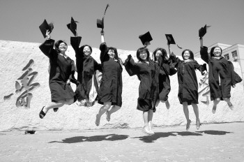 28日,鲁东大学内随处可见拍毕业照的学生,学士服、婚纱、学生装让人看得眼花缭乱。