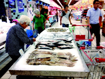 | 超市内消费者在选购鱼。 本报记者 姜文洁 摄 |