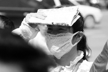 | 29日,聊城最高温达39.3℃,聊城市气象台连续三天发布高温橙色预警信号,图为市民想方设法躲避烈日。 本报记者 李军 摄 |