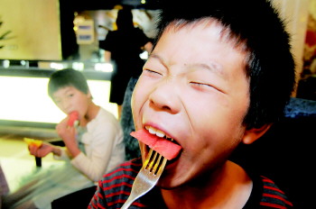 | 29日,排舞休息时间,孩子们比起翻跟头,杨智向大家展示“单手翻”。 |  | 许多好心人给孩子们送来衣服,马振红已经数不过来,拎起一件在身上比划着。 |  | 酒店的自助餐,孩子们都吃撑了。 |  | 不排练的时候,孩子们在酒店看书、写作业。 |  | 排练过程中,杨智有些心不在焉。 |  | 看到喜欢的动画片,孩子们激动地把声音调得很大。 |