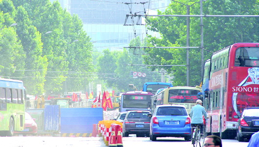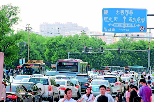 本报6月1日讯(见习记者 李师胜) 1日,是端午小长假的第二天,不少游客涌向天下第一泉景区与泉城广场附近。但是由于共青团路、趵突泉北路、普利街在修路,致使大量车辆在泉城路、共青团路与趵突泉北路交叉口附近寸步难行。 1日下午3时许,记者在泉城路、共青团路与趵突泉北路交叉口看到,泉城路直行到共青团路上的车辆排起了长龙,虽然趵突泉北路只是在路两侧施工,对整体的车辆通行影响并不是很大,但仍是车满为患。交警来来回回忙碌着指挥车流。 记者了解到,该路口恰处于趵突泉景区、五龙潭公园的交界处,而且也是趵突泉景区与大明湖景区的最短通道,南边紧邻泉城广场,每逢节假日,堵车几乎是必然的。虽然端午假期不比五一、十一等旅游黄金节假日,但是仍有不少自驾游客来济旅游,所以很容易出现堵车现象,而端午节赶上修路,更给游客添堵。 “从5月初开始,共青团路就开始修了。过了路口,经过普利街之后就顺畅了。”K101路公交司机告诉记者,每到这个路口就犯愁,不但堵得厉害,而且路面不平整,颠簸得厉害。 记者看到,西接经二路、东接共青团路的普利街实行的是封闭式施工,两侧完全堵住了,不少工人与车辆正在搬运各种管道。而共青团路则是中间挖开,两侧尚可以双向行驶,不过因为路面变窄,成了共青团路上的瓶颈。还有两辆同向行驶的电动车,因为道路太挤导致了一点摩擦,车主发生了口角,使本来拥挤的路面更加难行。 从北京到济南来旅游的魏女士称,“下午很早就逛完了大明湖,但是从大明湖到趵突泉几里地的距离,却走了有二十分钟,等了好几个红绿灯才过了泉城路西头的路口。”幸亏天气不是很热,否则在车里也很难熬。 “每个城市修路都可以理解,但是修路的时候如果能避开节假日就好了。节假日期间,来济南看泉水的游客这么多,游客在济南的路上堵得慌,本来看着景色还不错,可是因为堵车,对济南的整体印象就下来了。”魏女士说。 不过记者了解到,共青团路、趵突泉北路等路段修路选在了“五一”之后,考虑到了避开节假日的因素,但是仍然撞上了端午节,这才致使泉城路、共青团路与趵突泉北路交叉口位置堵成了一锅粥。