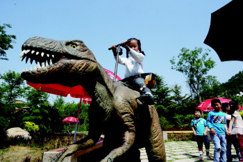 ◎随着世园会崂山分会场侏罗纪恐龙园的开放,引来许多小朋友前来参观体验。“六一”节期间,崂山分会场成了孩子们欢乐的海洋。5月31日、6月1日,每天均迎来近千名小朋友前来参观游览,近30只恐龙,让孩子们近距离接触侏罗纪,还可以骑恐龙模型,让孩子们乐翻天。