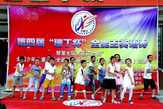 5月30日、31日,为促进学生口语表达能力,提高学员的英语综合能力,鼓励学生英语学习的积极性,瑞丁语言学校为广大学员提供展示自我英语风采的舞台,承办了第四届“瑞丁杯”全能王英语秀暨第七届“童声台奖”滨州赛区初赛。 本报记者 王泽云 本报实习生 许莹莹 60个学生精彩演出 引得路人围观 本次大赛共设置了三个小组,小A组由1-3年纪学生组成,小B组由4-6年纪学生组成,中A组由初中1-3年纪学生组成,报名学生有60人左右。大赛初赛时间是5月30日晚与5月31日晚,复赛暂定7月份,总决赛暂定8月份。 竞赛的内容主要由个人自我介绍、即兴演讲以及自我才艺展示组成,其中即兴演讲要求参赛者根据所提供的演讲题目任选其一进行英文演讲。其中,英文微型剧单项展示选手可以进行自由组合。微型剧内容有的反映校园生活、同学之间的故事、师生情谊以及社会现象片段等。 5月31日下午,比赛还没有开始,家长和孩子们已经早早来到瑞丁语言学校开始准备,不少孩子还直接登台提前排练一番,引得过路人都纷纷驻足观看。孩子们对自己的表演都充满了信心,台下的家长们也都为孩子们加油鼓励,准备好了各种拍摄的器材为孩子留下美好的回忆。 比赛开始后,孩子们各种精彩的英语演讲以及特长表演引得台下的家长以及过路人笑声不断、掌声不断。 在瑞丁学习两年多 学习成绩不断提高 5月31日下午6点多,记者采访了几个即将要登台参赛的选手和家长。刘文豪今年13岁,到瑞丁语言学校学习已经两年多。“当时是因为他的英语成绩不太好,所以就到处给他找英语辅导班,找了好几个,对比之后觉得这里好,所以就过来了。”刘文豪的妈妈舒女士说,舒女士觉得刘文豪在瑞丁学习之后变化非常大,“以前他性格很内向,基本不说话,现在他在课堂上能积极回答老师的问题,而且学习成绩也提上去了,变化非常大。” 刘文豪对自己的改变同样很高兴,“这里的教学方式和学校里不一样,上课气氛很轻松,老师讲课很幽默,感觉这里的老师就像朋友一样,所以慢慢地就敢和老师交流了,自己也变得有自信了。”刘文豪为这次比赛做了充分的准备,对自己也很有信心。 魏清羽今年10岁,在瑞丁语言学校也学习了两年多,“以前我爸爸妈妈都不注重英语口语,现在通过在这里学习,爸爸妈妈都很重视英语口语了,而且我现在英语基本都考满分。在这里学习,对我的各个方面都有提升。”