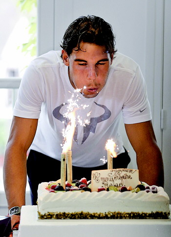 根据组委会的安排,3日这天罗兰·加洛斯的四号场地是没有任何比赛的,但是球迷会发现,却只有4号场地门口排着长队等着进场。原因无他,法网八冠王纳达尔要在这里训练。 3日一早,记者看到训练时间安排,发现别的选手按惯例都只有半个小时的训练时间,纳达尔却被安排了一个半小时的训练。为何组委会如此优待“纳豆”? 原来3日是纳达尔28岁的生日,很多球迷也是早早来到球场,不仅为了一睹偶像的风采,更是为了给偶像庆生。当纳达尔来赛球场后,早早等候的球迷齐声唱生日歌,让纳达尔害羞不已。之后组委会还准备了蛋糕为八冠王庆生,这一番折腾下来,难怪要留给纳达尔一个半小时了。