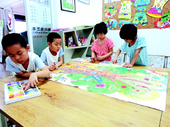 “我们画的叫‘我们的家’。”6月1日,今年已经6岁的“龙凤呈祥”四胞胎第一天开始到萤火虫艺术画室开始学画画,就画出了一幅不错的作品。在他们出生和遭遇了“入园难”时,本报进行了报道引来无数好心人帮助。 本报记者 李钢 摄