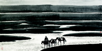 以草原风情为主题的绘画创作,是孙志钧工笔画的重要特色,经过了生活体验、情感融入、艺术锤炼与创作实践的漫长历程后,孙志钧的艺术进入了成熟的佳境,形成了鲜明的个性化的形式、手法与风格,传达出一种特殊的意蕴与气息。这是因为,在画家的生命中有一段难以忘怀的草原生活经历,因此成为他生命中极其重要的记忆。所以,在孙志钧的作品中,总是洋溢着太多、太浓、太深重的情感气息;正是这种生命的记忆,使他的作品尽管选择了具象,然而却不是再现性的描绘,画家以诗性的情怀,对曾经的生活和记忆片断中的晨雾、月色、草原、牧群、蒙古包以及饱经沧桑的牧人等,给予了提炼、加工并凝聚为“记忆”性的诗意画面,并使之成为心灵的向往、眷恋、怀念、情思与意绪的表达。在简洁与单纯的画面里,孙志钧坚决抛弃了少数民族题材创作中的猎奇、矫情与表面化的弊病,而是在从容平淡、日常生活中透出深长意味与象征意义。孙志钧的作品也因为注入了生命记忆而意蕴深邃与耐人寻味,在舒缓悠长中让人在追忆和怀念中获得心灵的启迪和充实。 1951年生于北京,1978年内蒙古师范大学美术系毕业,1987年中央美术学院国画系研究生毕业,获硕士学位。现为首都师范大学美术学院教授、博士研究生导师,中国美术家协会理事,中国美协民族美术艺委会副主任,教育部艺术教育委员会委员,中国工笔画学会副会长,北京美术家协会副主席,北京工笔重彩画会会长,中国画学会理事。
