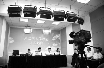 | 菏泽市疾病预防控制中心主任杨传欣做客市长热线。 本报记者 邓兴宇 摄 |