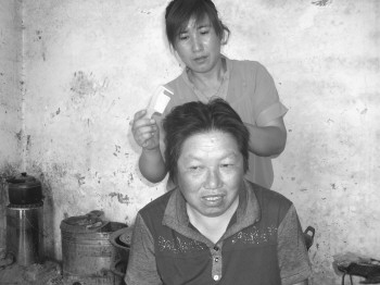 | 刘美华在帮婆婆梳头。 通讯员 汪允成 摄