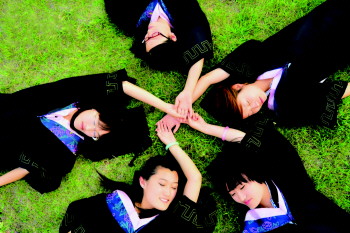 再见, ▲五个女生在操场上跳着合影。 本报记者 刘涛 摄