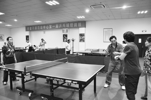 市老干部活动中心为提高老干部的乒乓球运动水平,丰富乒乓球训练内容,同时加强老干部在运动中的自我保护能力,特开设乒乓球培训班,邀请专业教练为老干部们讲解乒乓球运动知识。