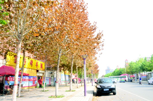 | 城区渤海六路约70棵法桐树叶变黄 | |