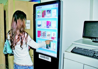 | ▲一位市民正在使用借阅机查询图书。 见习记者 陈乃彰 摄 |