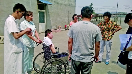6月5日上午,在福利院居住了9年的33岁智障女孟荣,再次坐上车,开始第二次回家之旅。她的父母已拖欠福利院近三万元的费用。 上午10点左右,一行人到达孟荣家乡章丘市圣井街道东姚村。孟荣的家在一条大马路边上,院落很大,南北两个大门紧锁。 从孟荣家离开,一行人又来到孟荣母亲秦女士工作的地点东姚村村委会,发现秦女士正坐在办公室里。秦女士似乎对大家的来意很清楚,她拒绝看孩子,而是厉声说道:“坐车一快送回家去!” 孟荣坐在车的最后排,一直在哭喊着叫“妈妈”,但是秦女士的视线始终不曾落在近在咫尺的女儿身上。从村委会回家的路上,关于女儿,秦女士一句话也没问。 在大家的紧密跟随下,秦女士一直没找到机会逃走。到家后,她只好打开门,将大家引进院内。在院子里,秦女士并没有打开屋门的意思。当被问到要将孟荣放到哪里时,她指着门口的一块石板说,“搁这里就行。”工作人员告诉她,她女儿无法站立和坐直,不适合放在这里,她不为所动。 工作人员好言跟秦女士商量怎么安置孟荣,她却说:“愿意搁哪儿就搁哪儿,随你便。”最后,工作人员自己找了个褥子,将孟荣安放到一块阴凉地里。 安置完毕后,福利院工作人员车先生请秦女士签署《休养人员退回告知书》,秦女士死活不同意。“啥也不为,我就不签。送回来我就不签。”秦女士耍起了无赖。