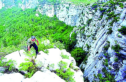 | 远眺卧牛山寨。 |  | 百米深的悬崖。 |  | 古山寨二道门。 |  | 用来舂米的石窝。 |