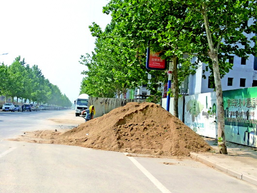 本报记者 杨擎 济阳县开发区不断发展,各大楼盘、小区拔地而起,随之也出现了不少问题。近日,家住领秀城的卢女士给本报“有事您说”栏目打来电话反映:闻韶佳苑二期施工,工程材料占了门前大半个马路,给附近市民带来诸多不便,存在极大安全隐患。接到市民反映后,城管执法局一中队立刻出动,要求开发商将占道工程材料进行处理,谁知刚清理完没几天又堆上了。 一堆沙子占大半个车道 近日,记者来到闻韶佳苑二期工程门口发现,在大门北面堆放着近一卡车沙子,民工们正往三轮推车上装沙子。“用多少沙子就往里推多少,里面其他的材料堆得很满,就现用现推了。”民工刘女士说,一般都是拉来一车沙子就直接从后斗上倒下来,倒不到最边上。 在现场,记者看到,这堆沙子不仅占用了整个非机动车道,还占了大半个机动车道,经过此处的市民无奈纷纷选择绕行。“这堆沙子已经在这儿堆了三四天,给附近的市民带来很多不方便。”家住领秀城的卢女士说,每次回家都要经过这里,这条路非机动车道本身就比较窄,结果全部都被占用了。 “现在天气这么热,路两边的树是为了给市民遮荫用的。”市民郭先生说,每天下午路西侧都有树荫,经过这个地方都要绕行到阳光下面去,气温高本身就比较浮躁,这样一绕,心里更不舒服了。 “骑电动车和自行车的市民还好些,他们的车体比较小,可以直接在马路右侧正常方向绕行。”车主王先生说,这堆沙子还有不到两米就触及马路中间的黄线了,每次开车经过这里绕行,都要占用黄线以东的部分马路,如果迎面有车驶过来难免会出现躲闪不及的状况,十分危险。 刚清理没几天又堆上了 接到市民反映后,2日清晨,济阳县城管执法局第一中队立刻出动四名队员,对闻韶佳苑门前占道现象进行规范,沙子已清理完毕,市民出行回归了方便。 “现在济阳县正在施工的工地特别多,我们的队员又比较少。”城管执法局一中队邵队长说,平时不断在济阳县主干道上巡逻,对主干道上的工程占道现象管理比较严格、及时。闻韶佳苑二期工程位于永安路路段,比较偏僻,平时巡查不免会出现漏掉的现象。 2日下午,记者再次来到闻韶佳苑二期工程门口,发现民工正在用三轮推车将沙子向工地内部转移。18时左右,门口的沙子已清理完毕,市民出行回归了正常。 4日,家住领秀城的一些市民又打来热线反映:“闻韶佳苑二期工程门口的沙子刚刚清理完毕,今天又被占上了。”记者再次来到闻韶佳苑二期工程门前发现,正堆在门前的沙子堆比之前的沙子还要多近1/3,不仅如此,工程门口的南面又堆放了不少砖瓦,占据了更多的车道。 记者与城管执法局第一中队取得联系。“之前找到其开发商负责人,对方表示材料太多,不好堆放。”一中队负责人说,会再次对其相关负责人进行规劝,建议其单独开辟一块存放材料的地方,并要求立刻解决占道问题。