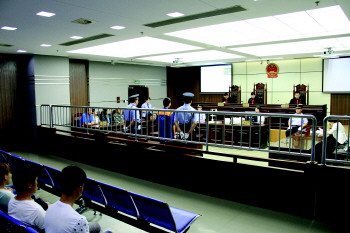 | 青岛中院庭审刑事案直播现场。 |