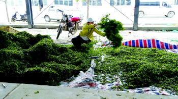 本报6月5日讯(记者 李清) 5月下旬,二轮春茶开始采摘。受逐渐升高的气温影响,二轮春茶长势很快,产量也比一轮春茶高出不少。6月4日,岚山区巨峰薄家口鲜叶交易市场内,春茶交易量激增,最低卖到5元一斤。 6月4日,在巨峰镇薄家口市场,前来售卖鲜叶的茶农们挤满了交易市场的走廊过道。你来我往的议价声,充斥着整个市场,十分热闹。由于交易量大,原本闲置的二号棚也利用起来了。 “来卖鲜叶的茶农和茶商并没有多大变化,主要是交易量上去了。鲜叶便宜,茶贩们就不怕压货。”一位在此收鲜叶的茶商李先生介绍。 在交易市场,记者看到薄家口村的茶商张女士一边收着鲜叶,一边将鲜叶铺设在身后的篷布上摊晾。“鲜叶太多,收的时间长了容易堆积出味,先晾着。”说着,张女士又将另一张篷布铺开,准备摊晾鲜叶。当天她收的鲜叶,多是每斤10元左右的粗料。 当日鲜叶的价格最低达到5元/斤,比去年同期略有下降。“最粗的原料卖五六块钱一斤,最精细的原料一斤卖30元以上。”前来收料的茶商王先生介绍,每斤鲜叶5元的话,制作成本就可以控制在35元以内。 二轮春茶上市,茶农们的采茶速度也加快了。薄家口村的薄先生介绍,一轮春茶原料精细,出芽率有限,他们都要在茶棚上找寻鲜料,每采上一斤都要累得头晕眼花,对视力和体力有很大的考验。如今,二轮春茶上市,虽然没有一轮春茶价格高,但是一天的采摘量大了,收入也不少。现在他每天能采十多斤鲜叶,收入在五六十元。