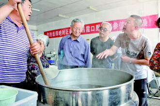 | 在西霞口海参加工区,工作人员在熬制海参,对其初加工。 记者 王帅 摄 |