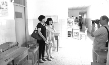 6日下午,山师附中考场,市民张崴革夫妇跟着高考生女儿看考场,酷爱摄影的老张决定全程跟拍女儿的高考过程。 本报记者 周青先 摄