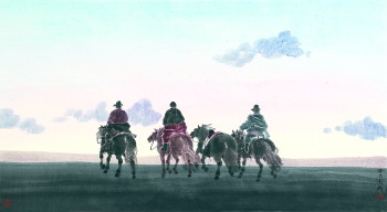 将中国绘画与西方技法相结合 画出一个多彩的西藏 山东文化是中原文化的典型代表,虽然它与西藏文化相去甚远,但孙志钧认为这并不影响山东观众对西藏题材绘画的欣赏和钟爱,“根据人本的理念,无论画的是什么地方,人性的东西在精神上都是相通的,这也是中国艺术能够和西方艺术沟通交流的原因。”曾经在内蒙古插队生活过多年的孙志钧,从内蒙古草原画到了西藏的草原,他认为二者之间是一脉相通的,“内蒙古是辽阔,西藏是高远,人的气质会因为地域影响而不同,但是少数民族的那种本真纯朴是最打动我的。现代社会让人离自然越来越远,但我们从少数民族身上看到更多的是他们对自然的依赖和自然对他们的影响。” 欣赏孙志钧的画作你会发现西方绘画对他的深刻的影响,他将中国传统绘画中的留白都用色彩填满,又采用了西方绘画的透视手法。“我画草原水墨画了15年,才慢慢觉得样式和技术算完善了,可以说是用15年画了一张画。这和我的生活经历有关,我自己也学过西画,又在草原生活了多年,我觉得用传统中国画的形式很难表现我对草原的感受,用西画的色调色彩和焦点透视更加符合我对草原的理解。”著名画家韩振刚认为这种创新是必须的,“画西藏用传统中国画的技法根本画不出来,披麻皴、斧劈皴都没法用。”著名画家郑山麓认为,“原来古代的艺术家没有进入西藏的机会,如果他们当时能到西藏,也会发明出适合描绘西藏山川的手法。”