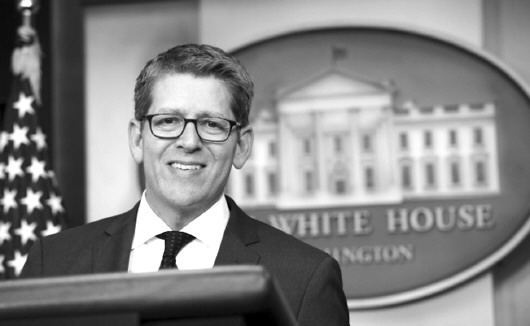 5月30日,美国总统奥巴马很“唐突”地闯进白宫例行记者会现场,宣布了白宫发言人杰伊·卡尼6月中旬将要离任的消息。在卡尼即将告别3年多时间的白宫新闻秘书生涯时,美国媒体揶揄他“对这个问题我没有答案”式的标志性回答,而卡尼自己则评论说:“不管新闻发布会有多艰难,我都很高兴站在这里。” □本报记者 张文