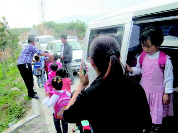 核载8人的面包车挤了19个孩子
