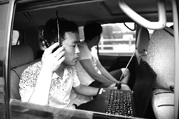 工作人员监听有无异常无线电波。 本报记者 刘涛 摄