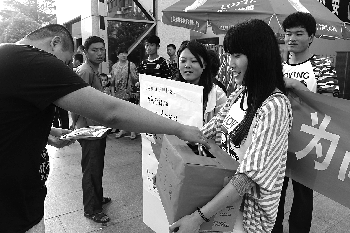 考试结束后,考生捐出笔做慈善。 本报记者 李清 摄