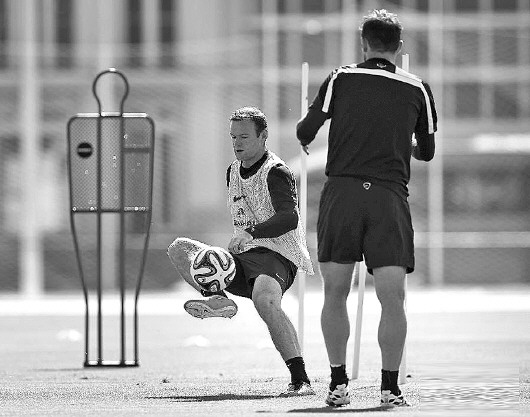 英格兰队员在训练中轮流踢点球,为了能让霍奇森检查训练效果,霍奇森的工作人员还拍摄了他们训练的视频。 (新体)