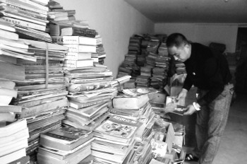 | 其中一个车库里,堆放着约有八吨旧书,是他二十年来花费心血淘来的。 本报记者 王传胜 摄 |