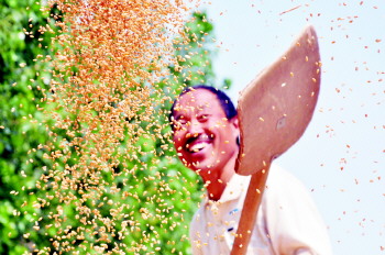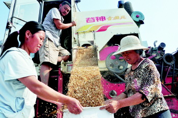 文/片 记者 李军 通讯员 赵玉国 陈广超 激情六月,骄阳似火。在物华天宝的运河古都聊城大地上,夏收工作正在如火如荼地进行着。小麦收割现场依旧是一片繁忙景象——麦农们开着自家农用车,在田间地头排成长队,等待着自家小麦收割,不时谈论着小麦长势和收成情况,他们的笑容预示着今年又是一个丰收年。 在茌平县贾寨镇侯楼村的麦田里,大型联合收割机在金黄的麦地里紧张作业:收割、脱粒、装袋、麦秸打捆……在机械化流水操作下,大片麦田颗粒归仓。据了解,预计今年全市620万亩小麦机械化收获从6月5日左右开始,17日左右结束,麦收高峰期将上阵小麦收割机达16000余台。