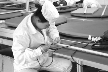 | 山东巨益新能源有限公司职工正在组装LED灯。本报记者 赵念东 摄 |
