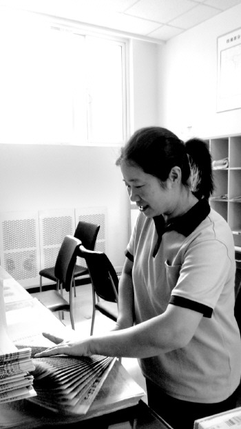 | 张景云在查点报纸。 本报记者 张建丽 摄 |