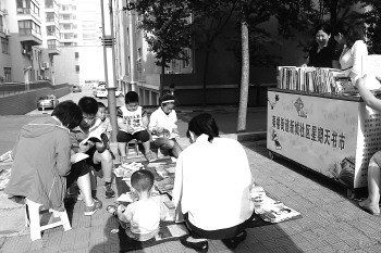 在新城社区开展的服务活动中最受欢迎的当属“星期天书市”了。上周末,新城社区的“以书会友、交换图书”活动现场热闹非凡,尤其是小朋友们,互相询问着、翻看着,拿着自己的图书互换。