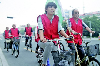 10日是全国低碳日,环翠区前进社区的20余名居民沿着世昌大道骑行,以实际行动来倡导快乐骑行、低碳生活的生活理念。