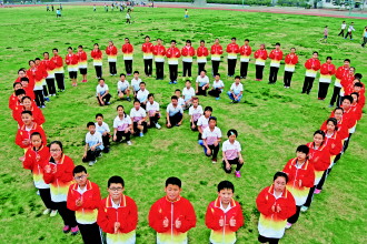 父亲节临近,11日,塔山中学69名学生用身体拼成用心图形包裹“父”字,以此表达对父亲的爱,抒发对父亲的感恩之情。
