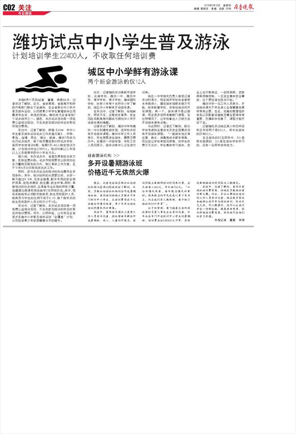 潍坊试点中小学生普及游泳