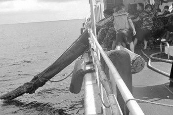 ◤图为中方船只打捞越方船只抛撒的影响航行安全的漂浮物。 (外交部网站供图)