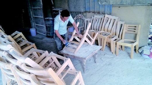 | 山东迈宝赫健身器材有限公司车间内摆放着准备装运的跑步机。 本报记者 马绍栋 摄 |  | 在宁津宏正木器厂,工人正在加工椅子。 本报记者 马绍栋 摄 |
