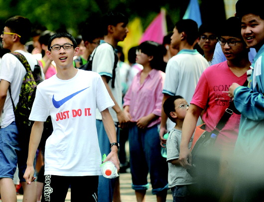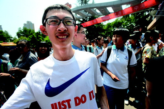 | ▲中考结束,大鹏满面笑容走出考场。 |  | ◤13日上午考数学,本来指望数学满分的大鹏一进门就趴到床上哭了。 |  | ▼6月6日学校要拍毕业照。早上六点十分,奶奶和妈妈起来,用电风扇和吹风机烘干校服。 |  | 12日晚还在复习数学。 |  | ▲进了考场,回头望的却不是父母方向,据同学说是他喜欢的女生来到考点门口了。 |  | ◥大鹏说打球是缓解压力的最好方式。 |  | ▲“要是天天都中考多好呀。”14日中午中考结束后,奶奶慰劳一下大鹏。 |