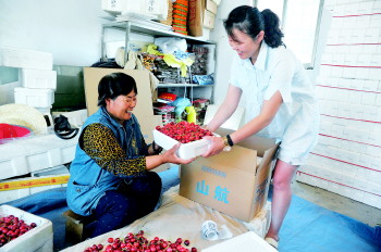 5月20日,山航货运微信公众服务号(sda_cargo)上线,建立微信商城,试水生鲜冷链航空货运市场。立足本省农产品资源,通过跨界整合资源与合作,建立起产、供、运、销全程供应链服务,实现机场到机场生鲜商品运销。目前投放大樱桃和蓝莓两个本地生鲜单品。6月11日,山航烟台货运生鲜项目专员于秀娟正为当天的300多份大樱桃订单监督装箱。